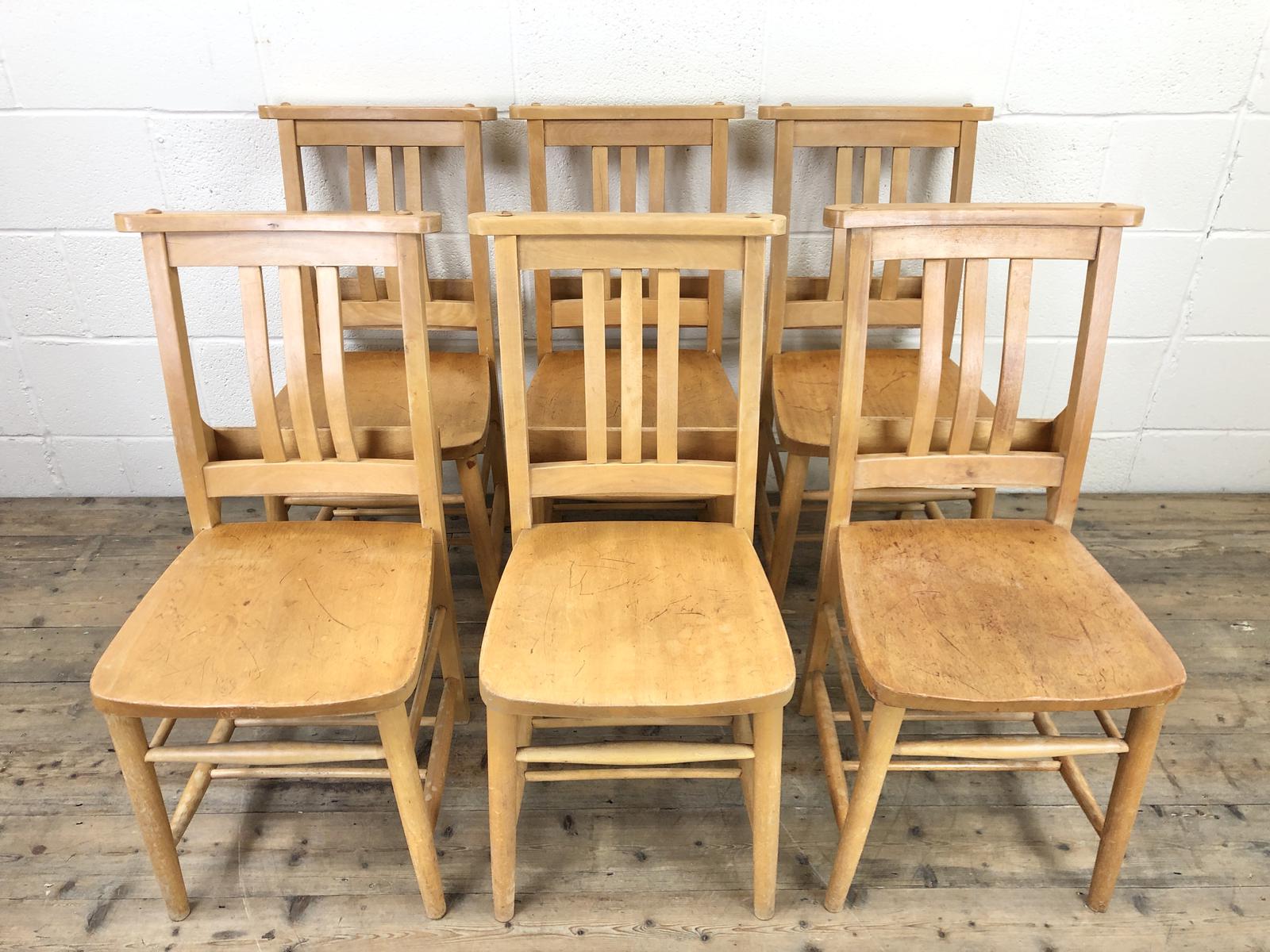 Set of Six Vintage Beech Chapel Chairs (1 of 19)