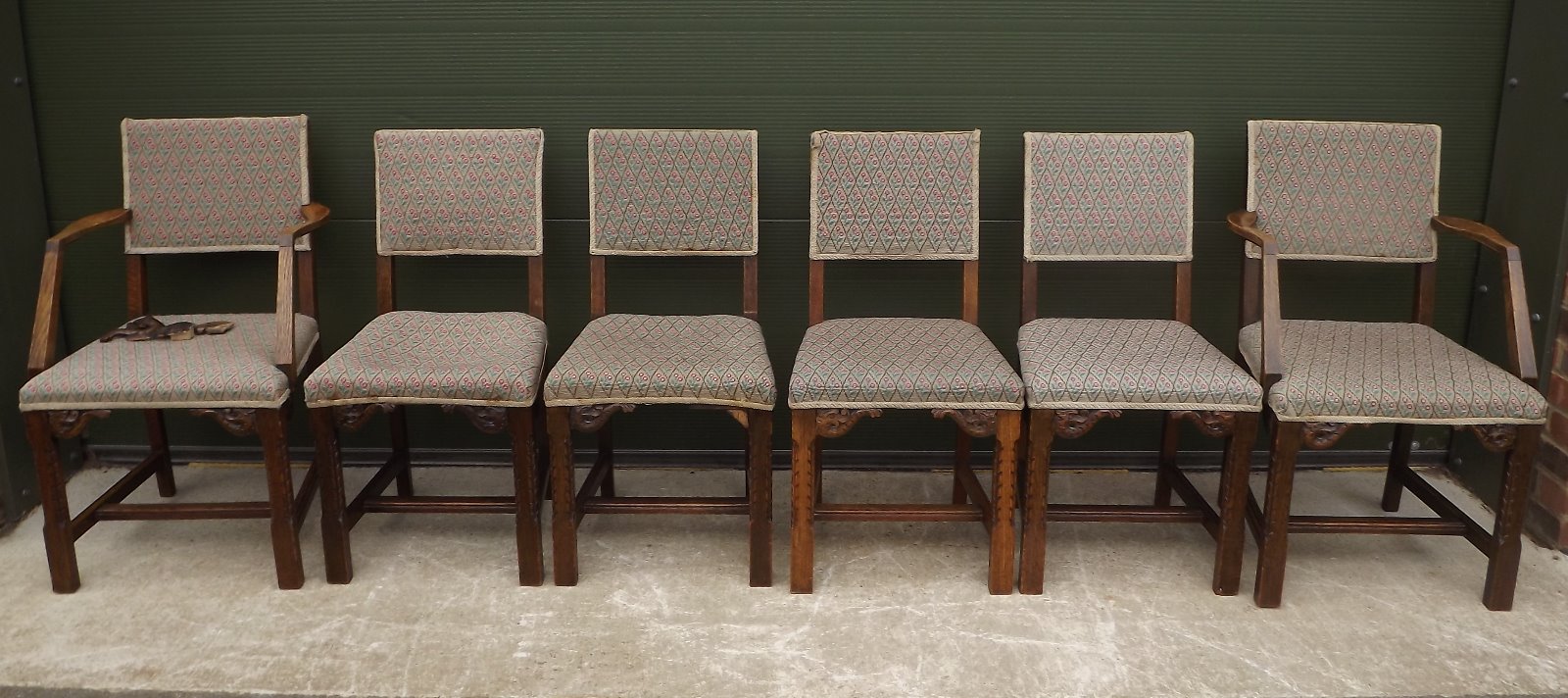 Set of Six Vintage Upholstered Oak Dining Chairs