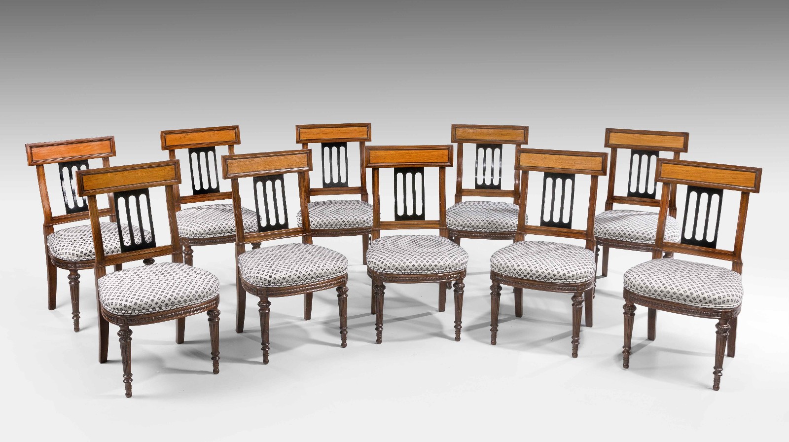 Set of Ten 19th Century Mahogany & Satinwood Dining Chairs C.1880