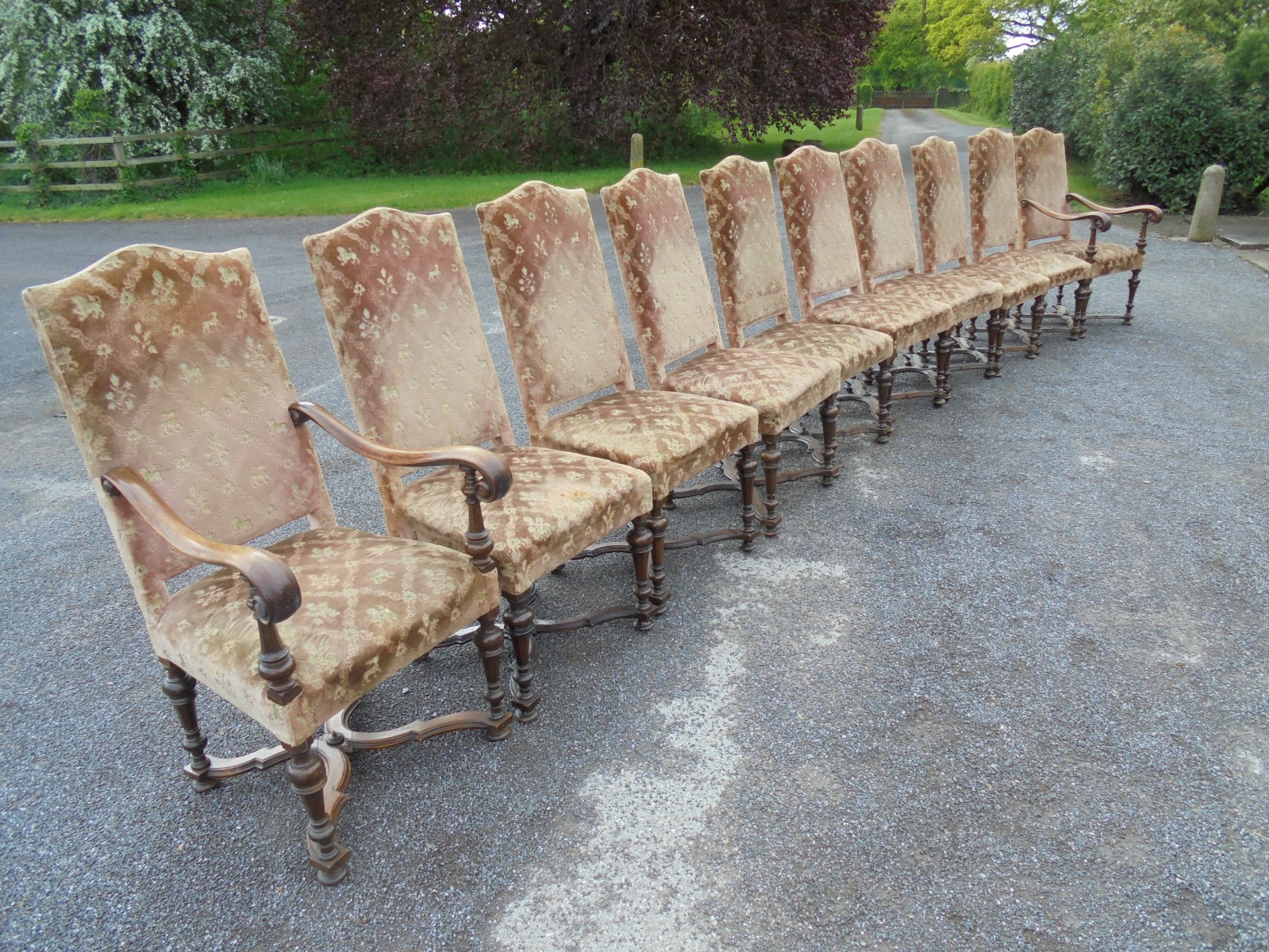 Set of Ten French Upholstered Dining Chairs