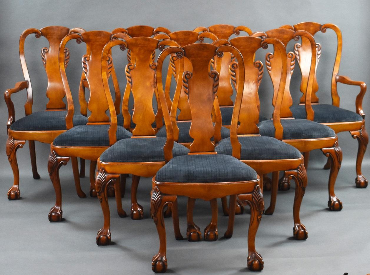 Set of Ten George II Style Walnut & Upholstered Dining Chairs