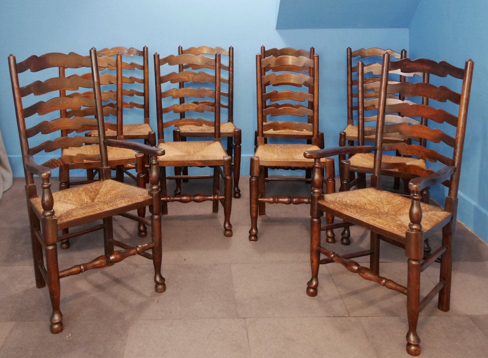 Set of Ten Ladderback Rush Seated Dining Chairs c.1880