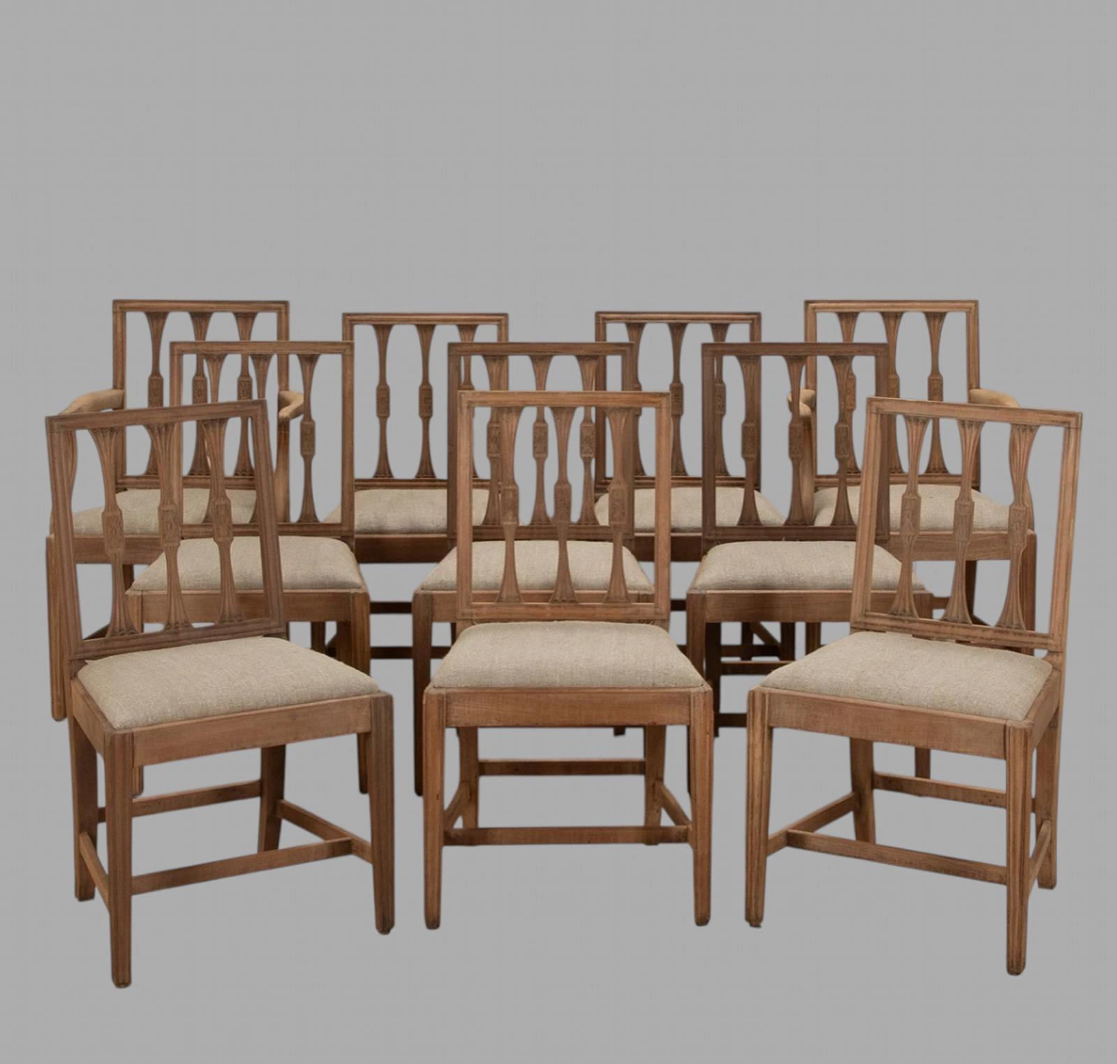 Set of Ten Mahogany Bleached Dining Chairs
