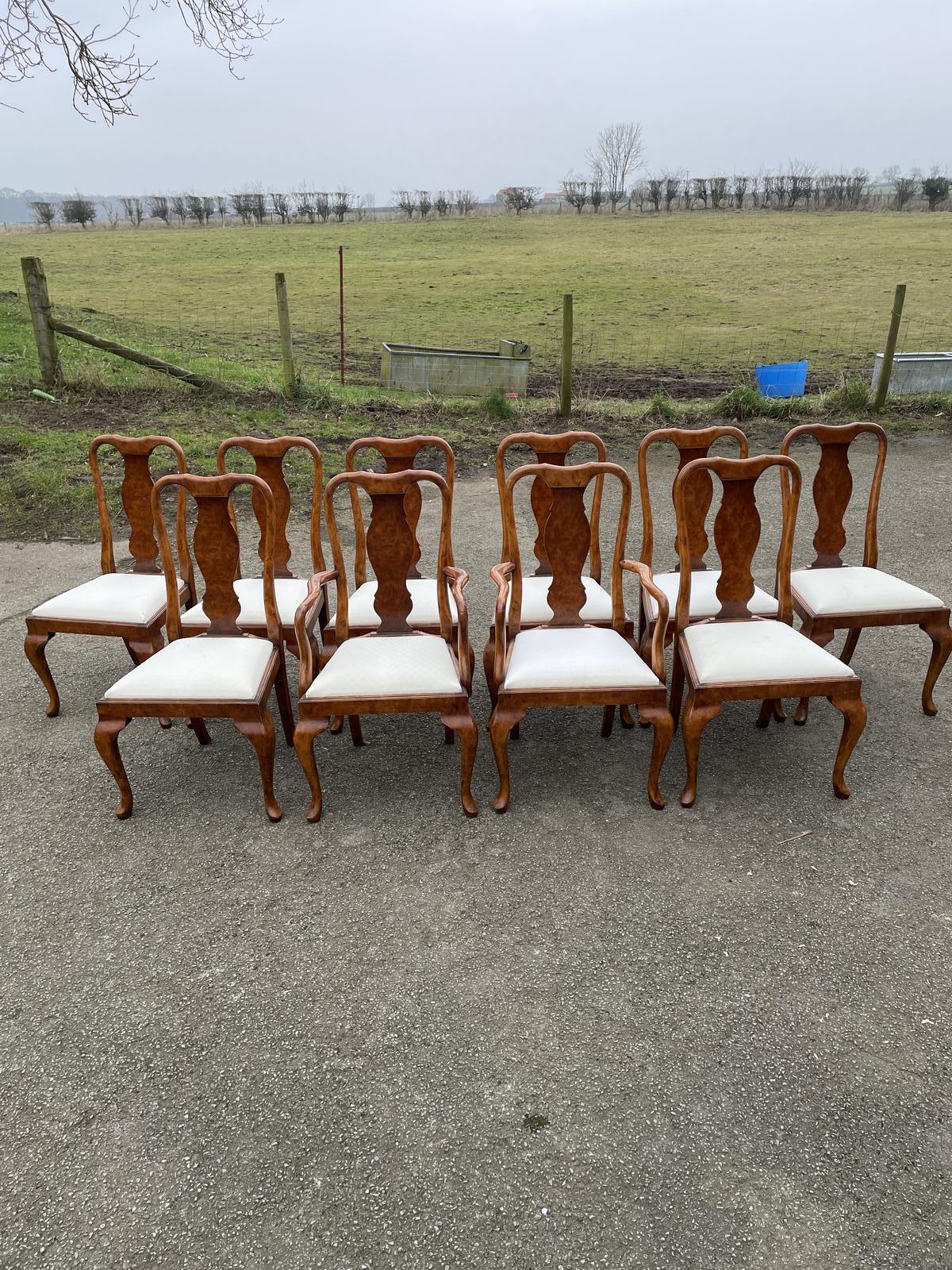 Set of Ten Queen Anne Style Burr Walnut Dining Chairs