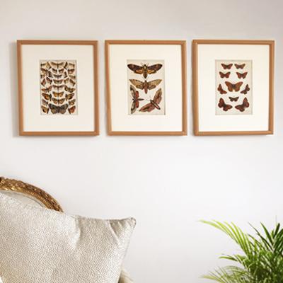 Set of Three Coloured Butterfly & Moth Prints, Dated c.1900