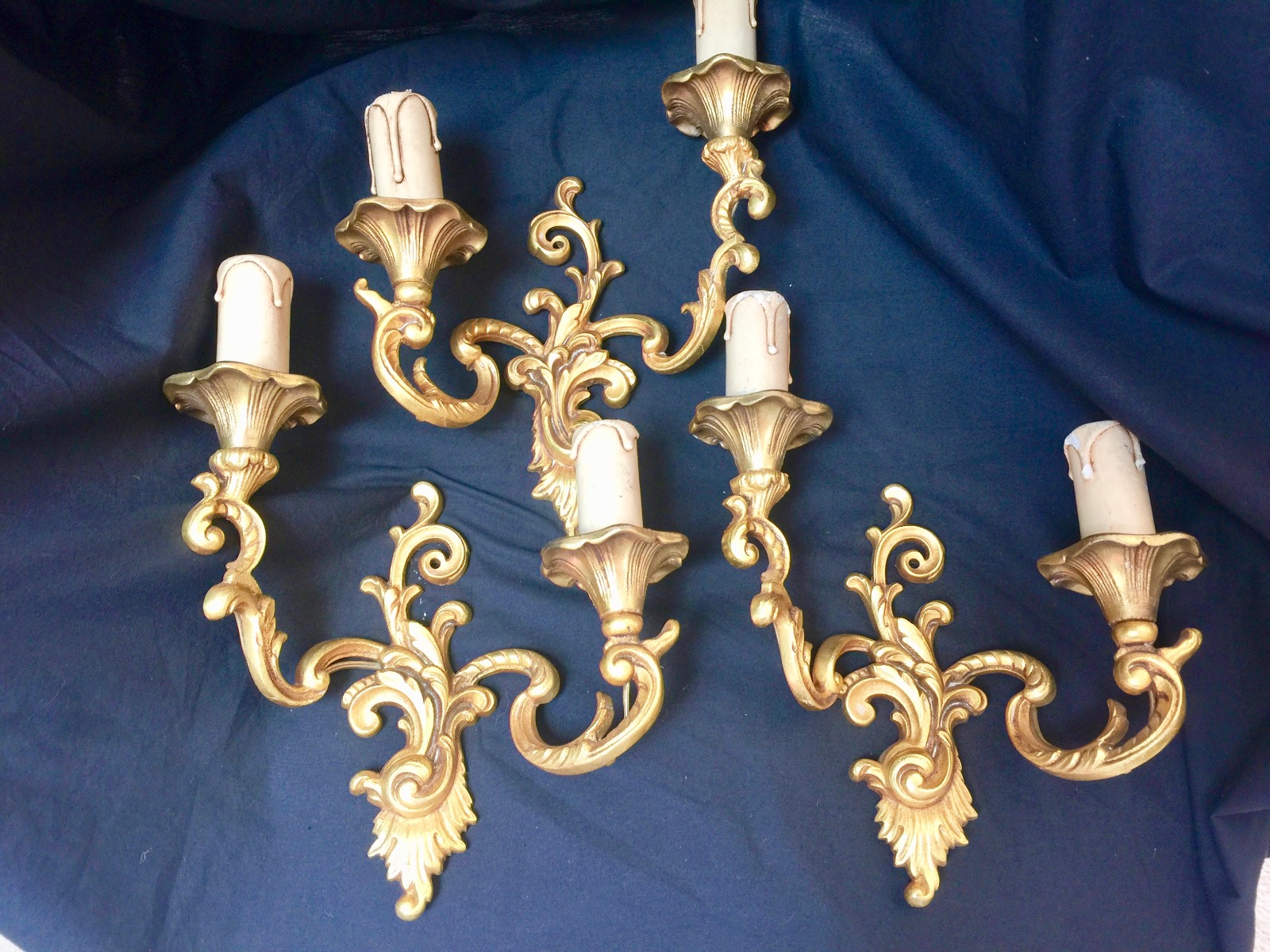 Set of Three French Gilt Brass Wall-Lights c.1920