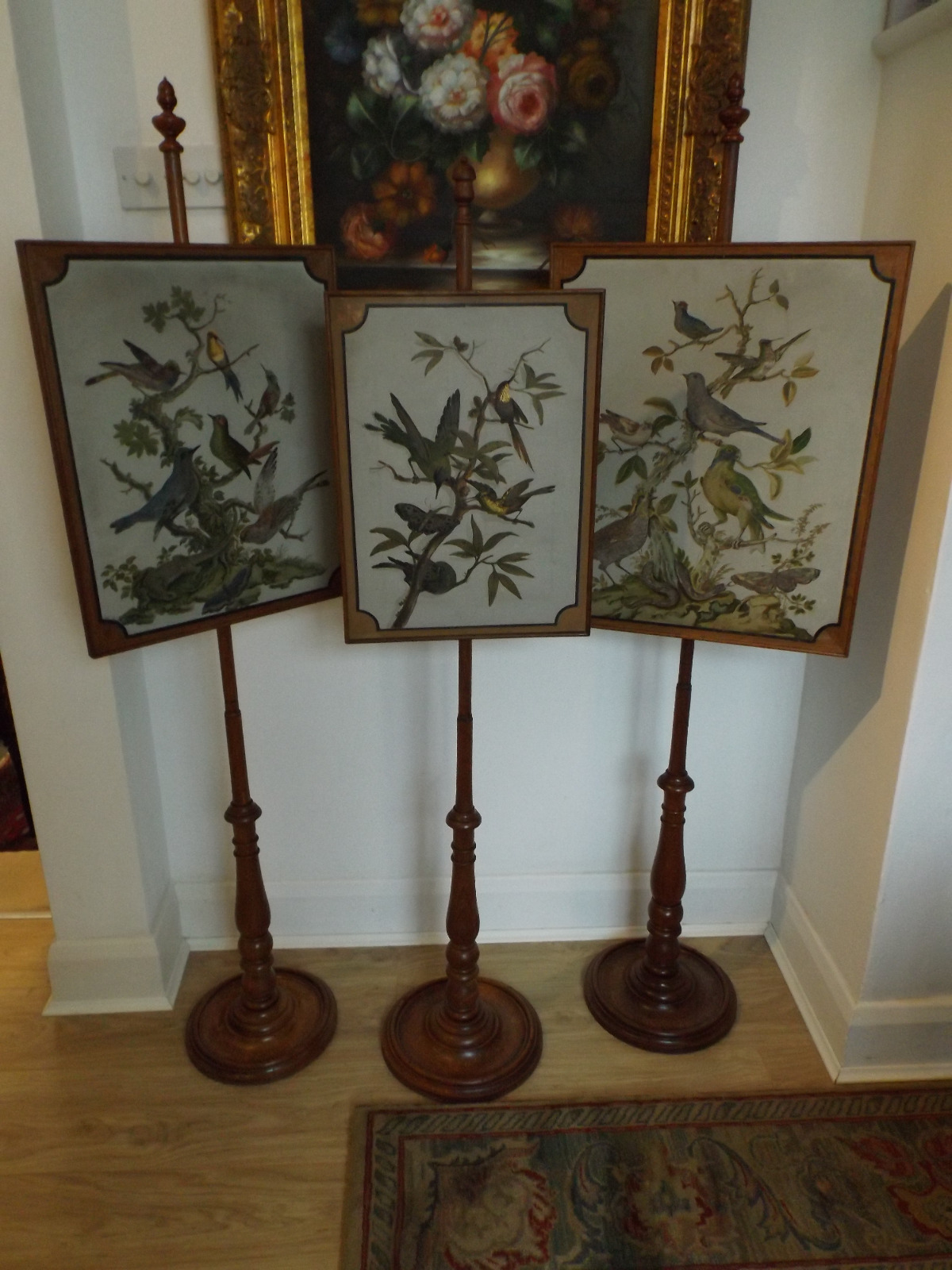 Set of Three Hand Painted Oak Pole Screens