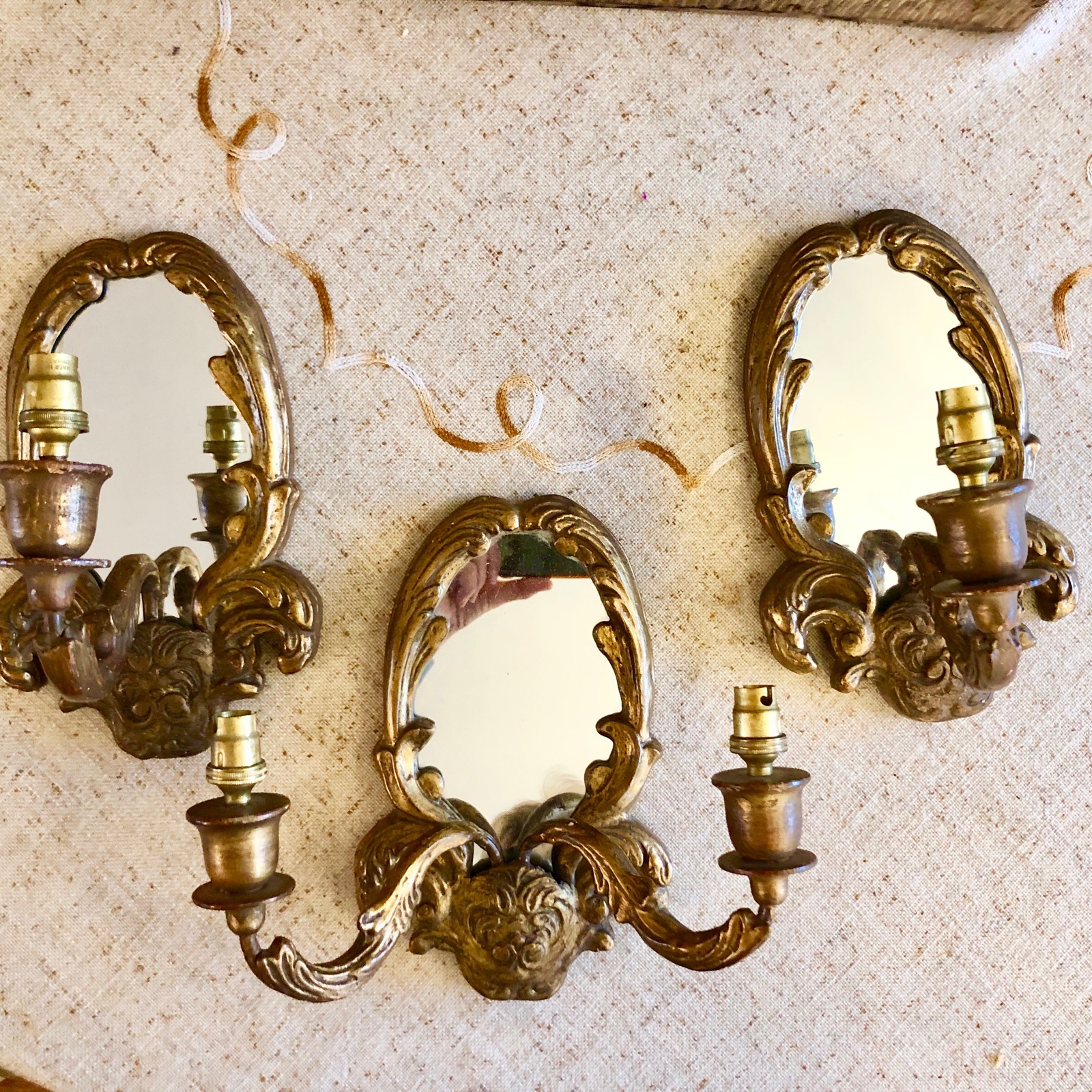 Set of Three Mirror Backed Gilt Wall Lights c.1920