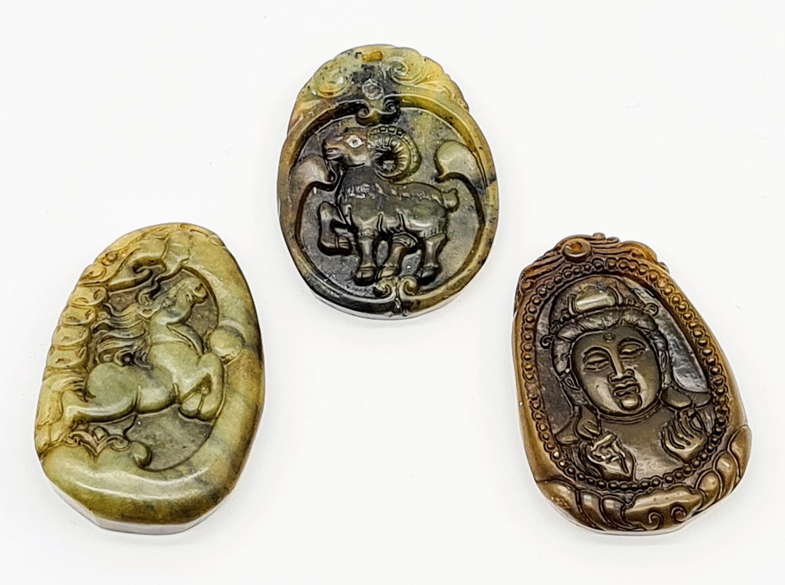 Set of Three Vintage Chinese Jade Pendants Hand Carved