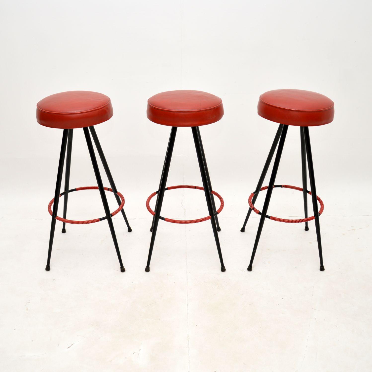 Set of Three Vintage Steel Bar Stools (1 of 9)