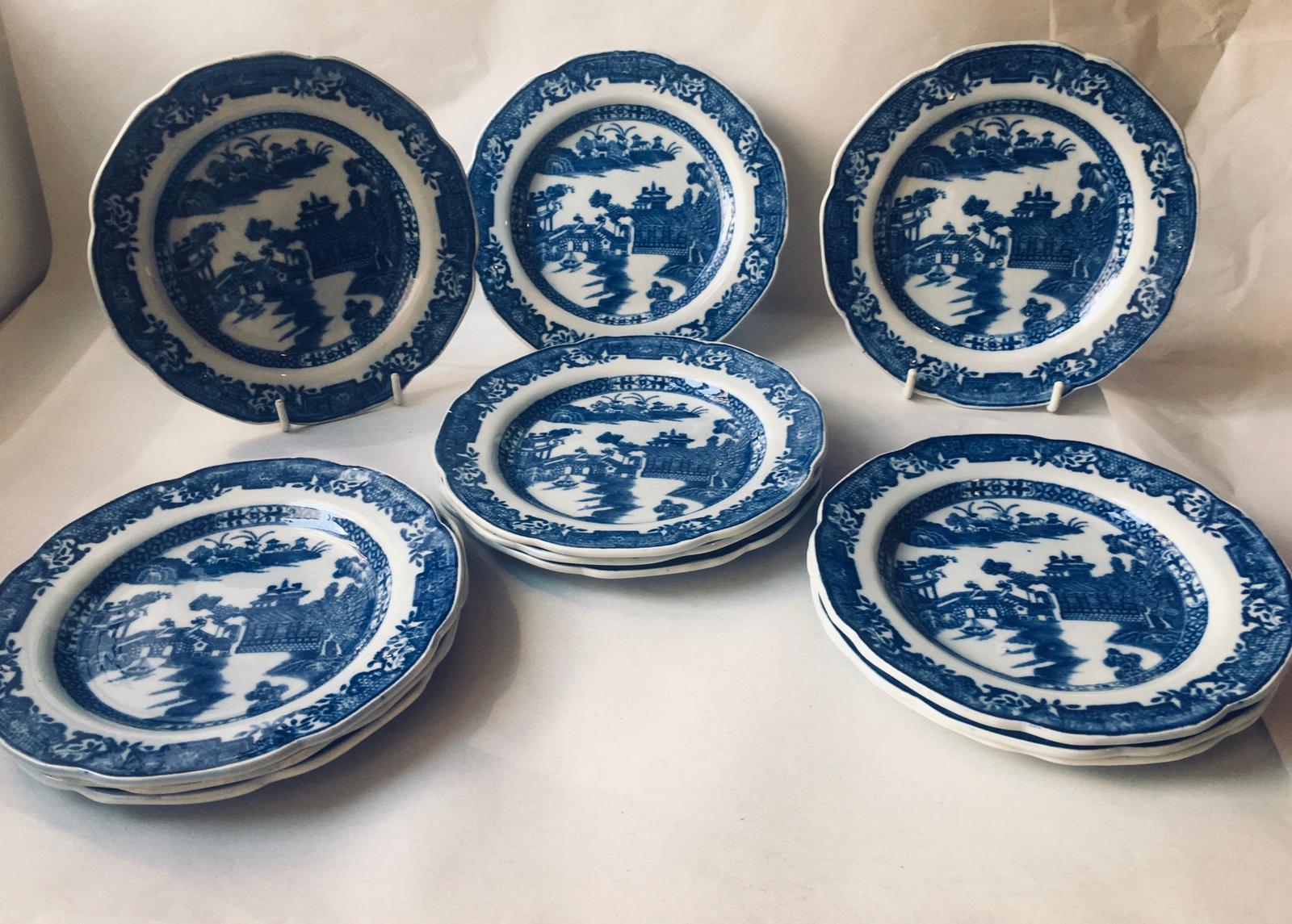 Set of Twelve Leeds Pearlware Blue & White Side Plates