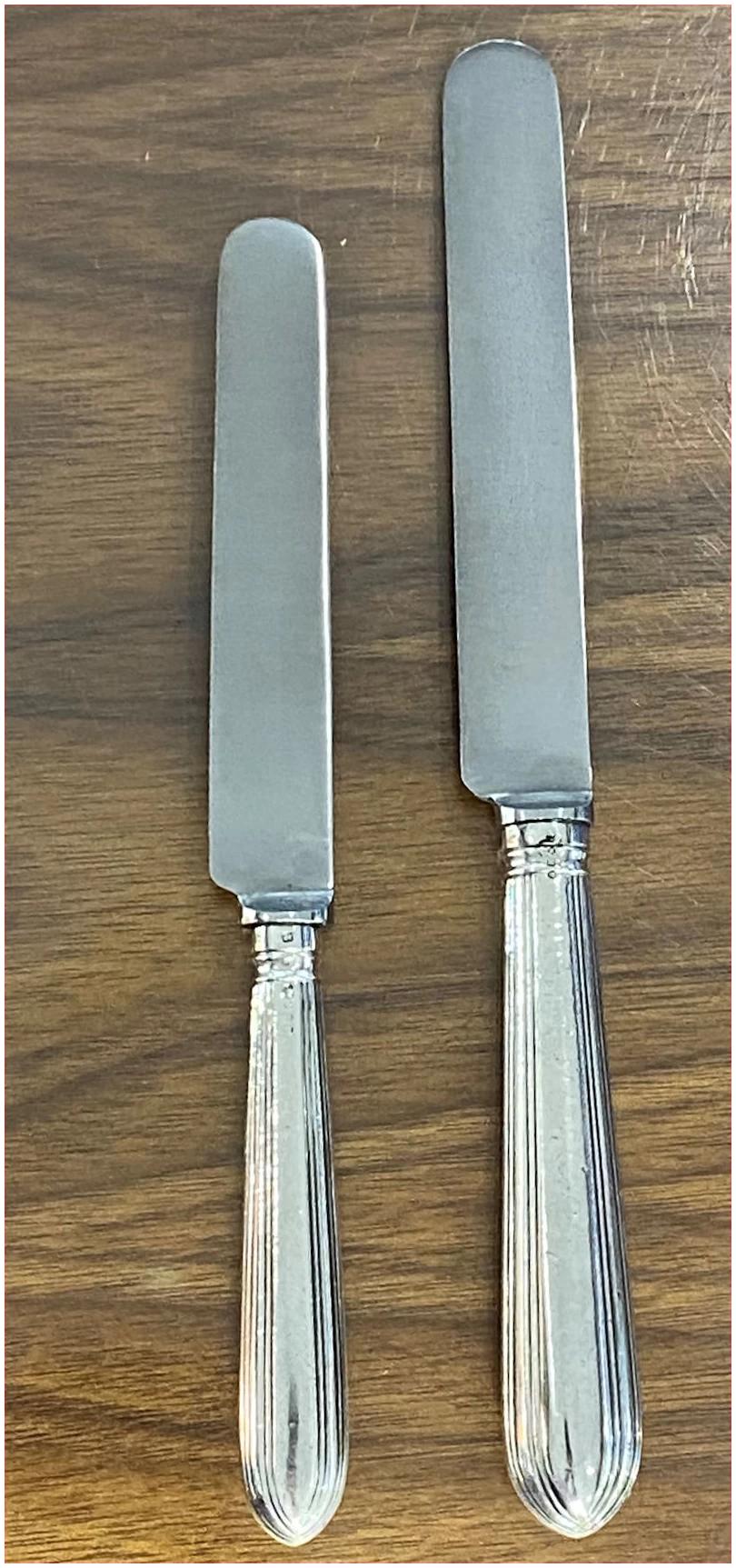 Set of Twelve Pairs of Victorian Antique Silver Thread Pattern Knives Made in 1853