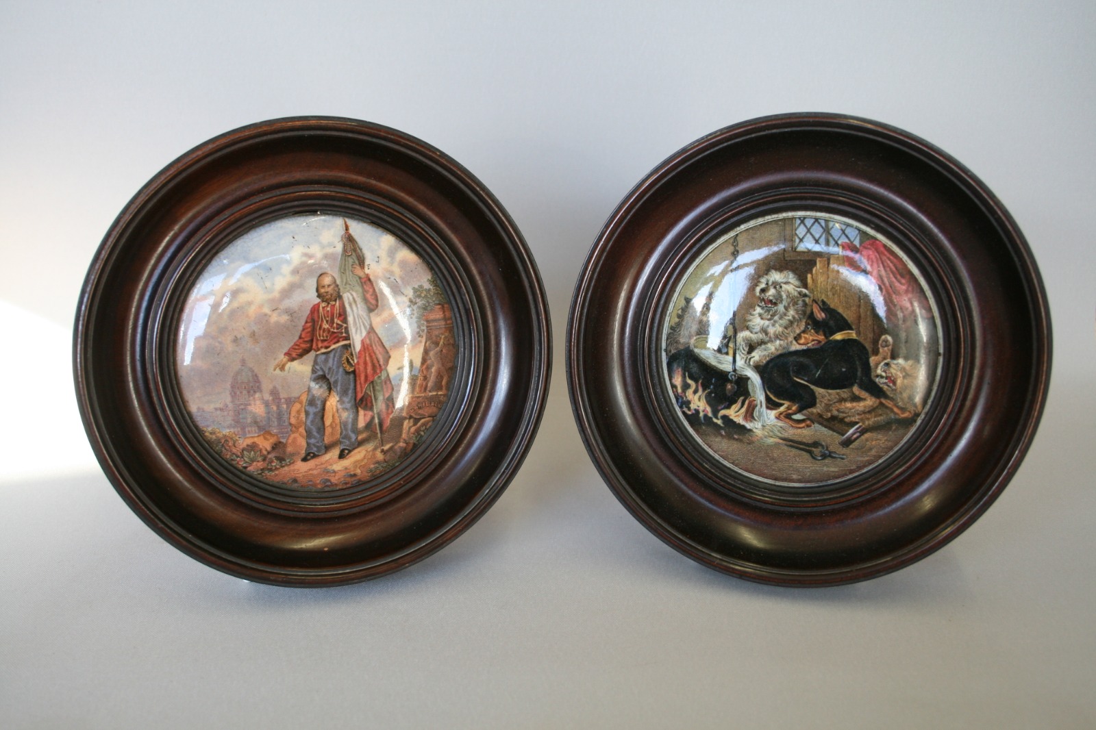 Set of Two Prattware Pot Lids in Mahogany Frames c.1860 (1 of 4)