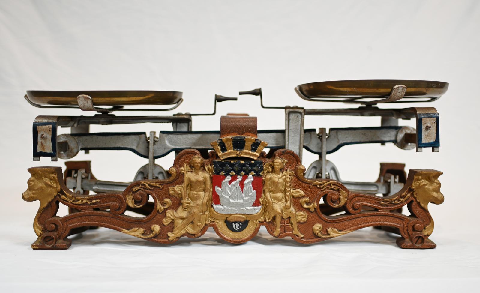 Set of Victorian Scales Cast Iron Coloured Crest Weights