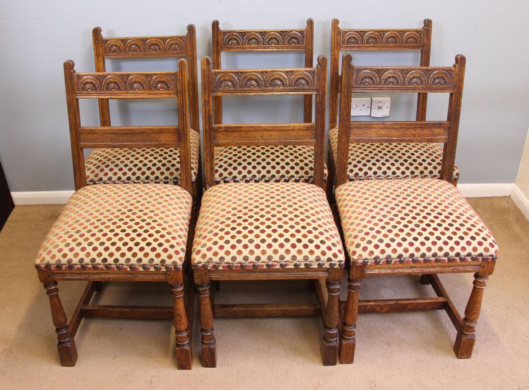 Set Six Antique Oak Country Dining Chairs. (1 of 9)