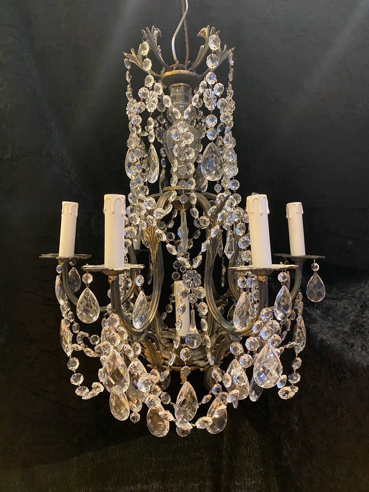 Seven Light French Antique Cage Chandelier