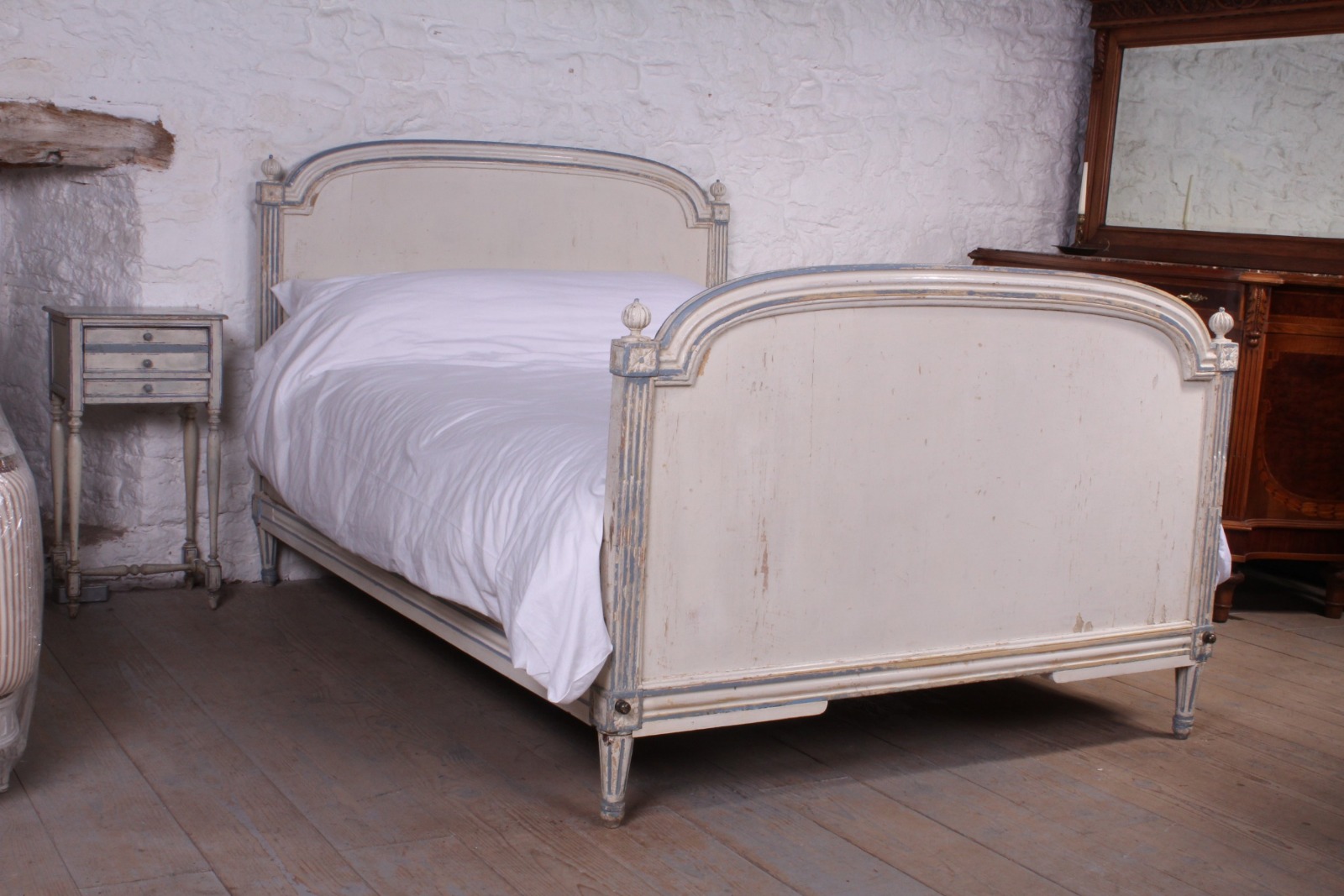 Shabby Chic Painted Directoire Style French King Size Bed with Bedside c.1880