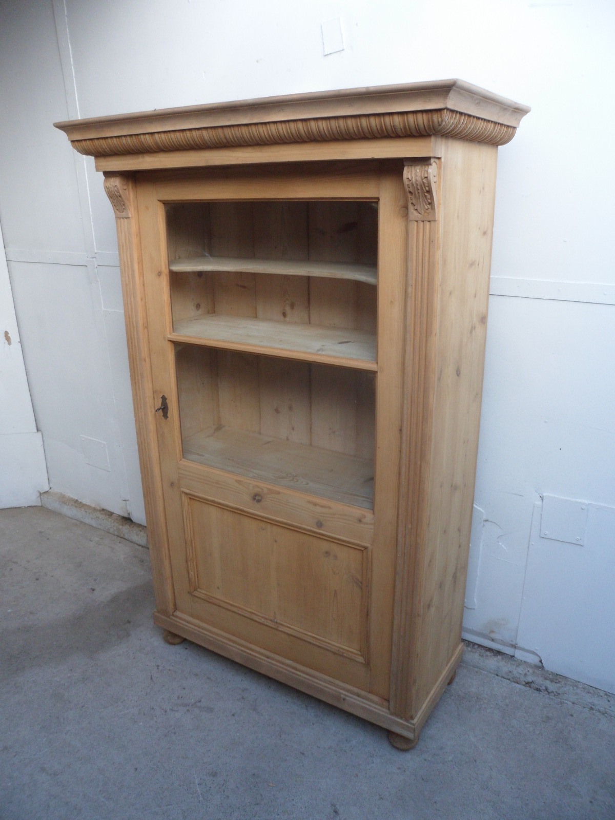 Shallow Carved Victorian Antique Pine 1 Door Display Cabinet to wax / paint