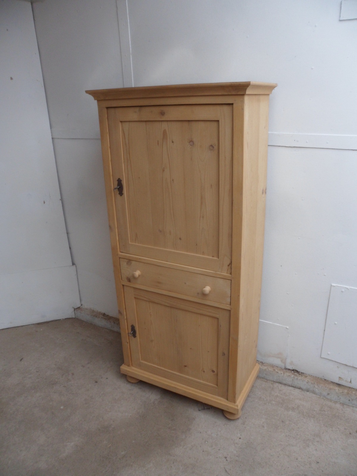 Shallow Old Pine 2 Door 1 Drawer Kitchen Storage Cupboard to wax / paint