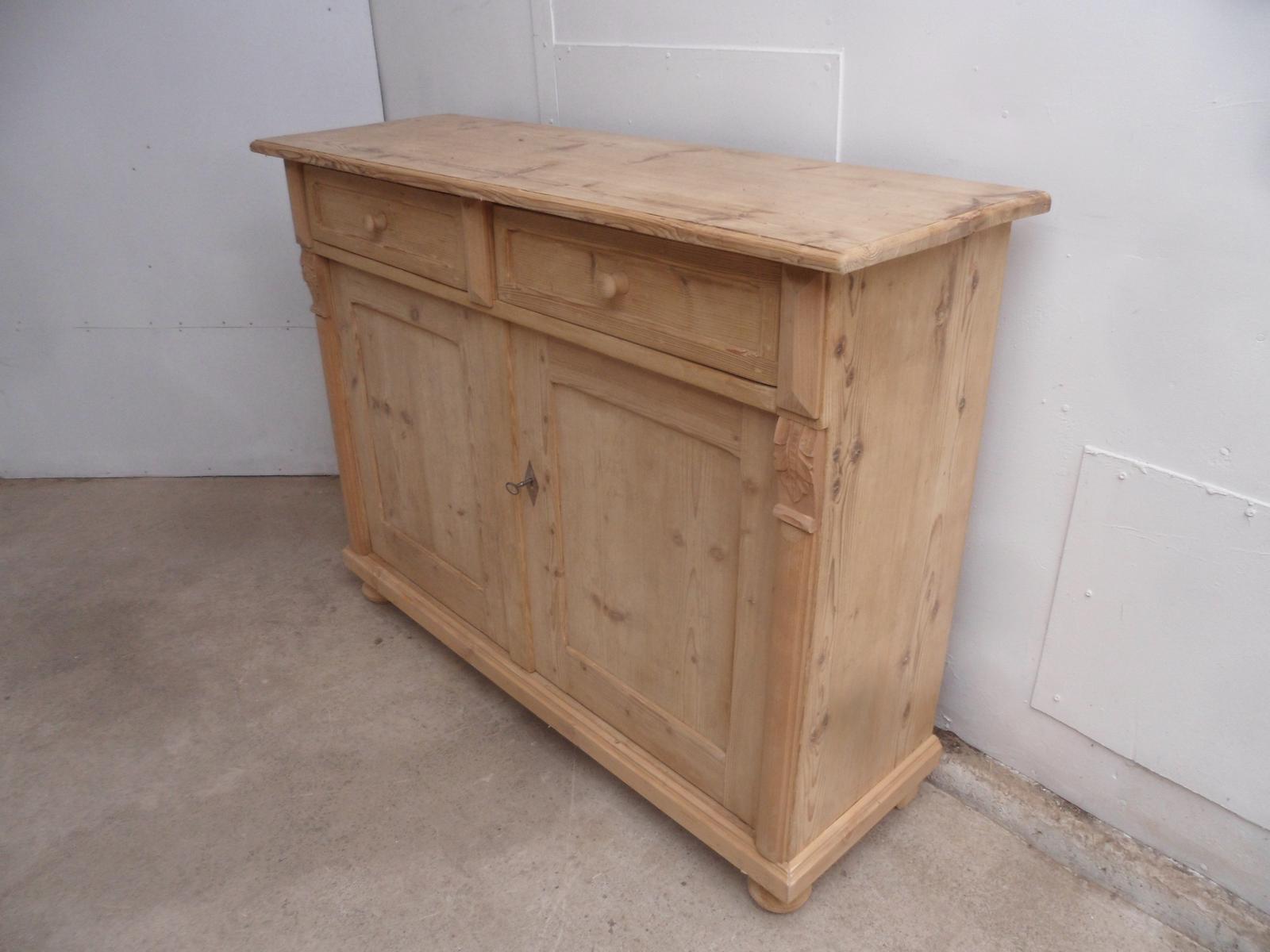Shallow Victorian Antique Pine 2 Door Dresser Base / TV Stand to wax / paint