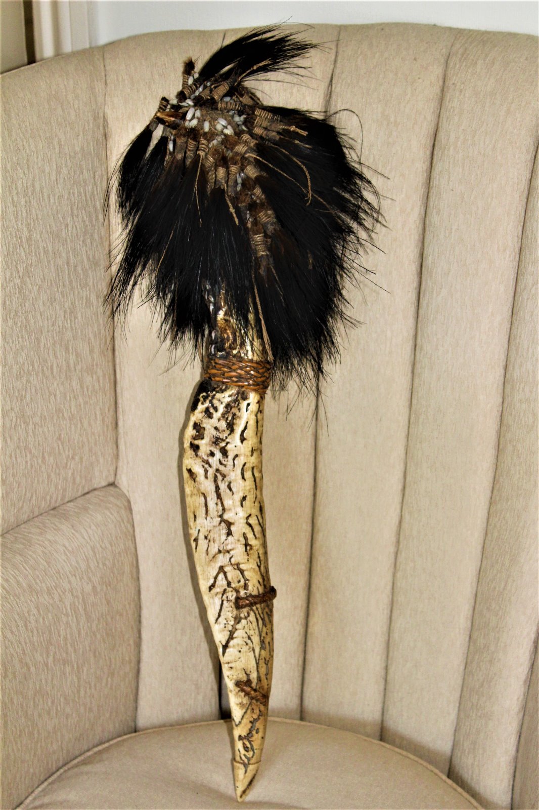 Shamanic Ritual Ceremonial Carved Bone Wand Used by Witch Doctors with Woven Hood from Papua New Guinea c.1860 to 1880