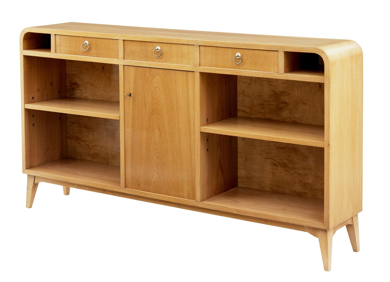 Shaped 1950s Scandinavian Elm Open Bookcase Cupboard (1 of 1)