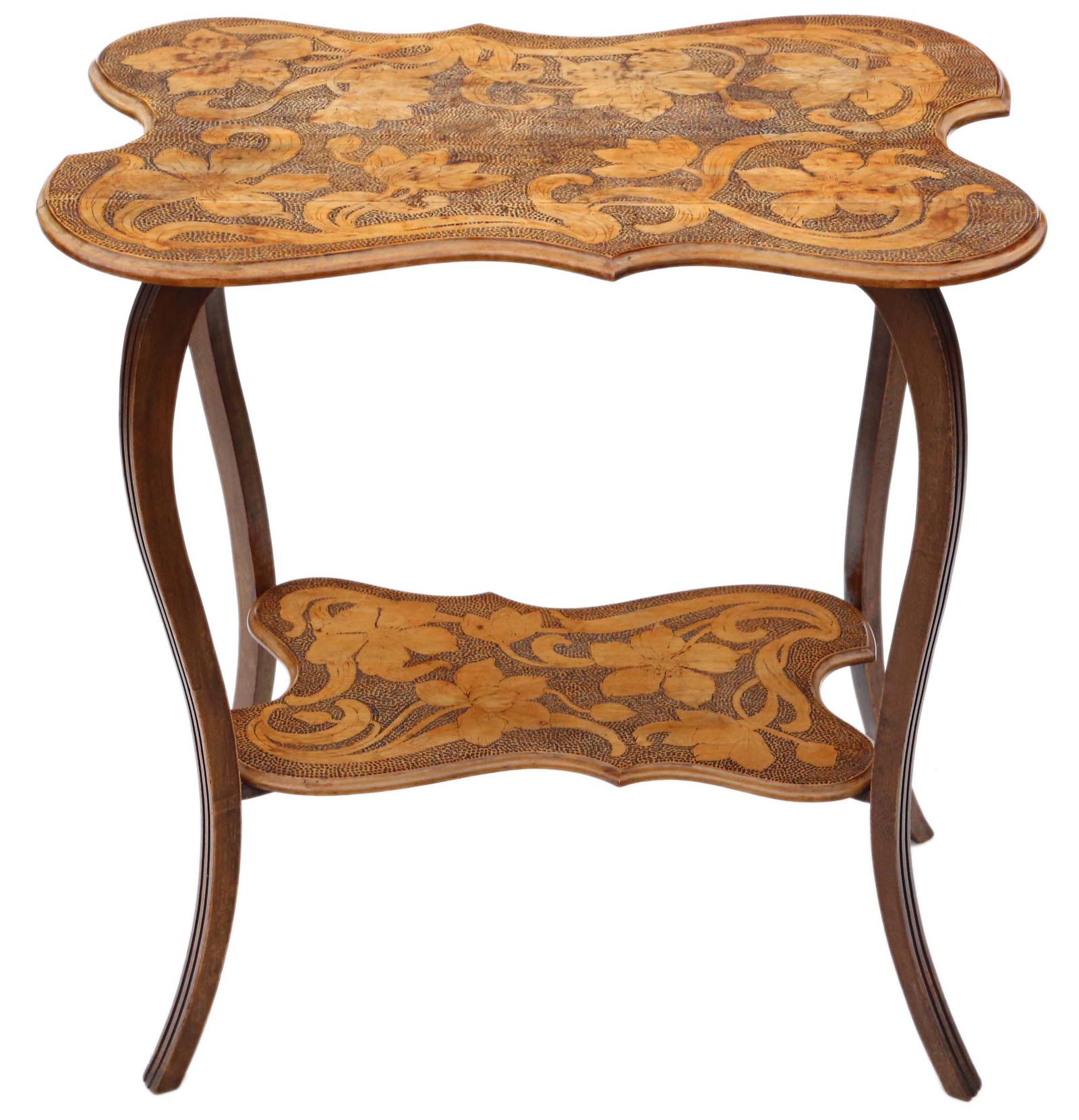 Shaped Beech Pokerwork Occasional Side Table c.1900 (1 of 6)