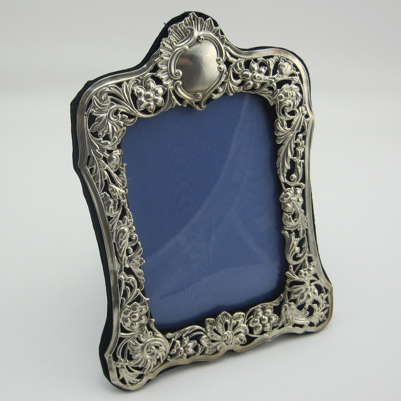 Shaped Silver Photo Frame with Floral Embossed Pierced Border