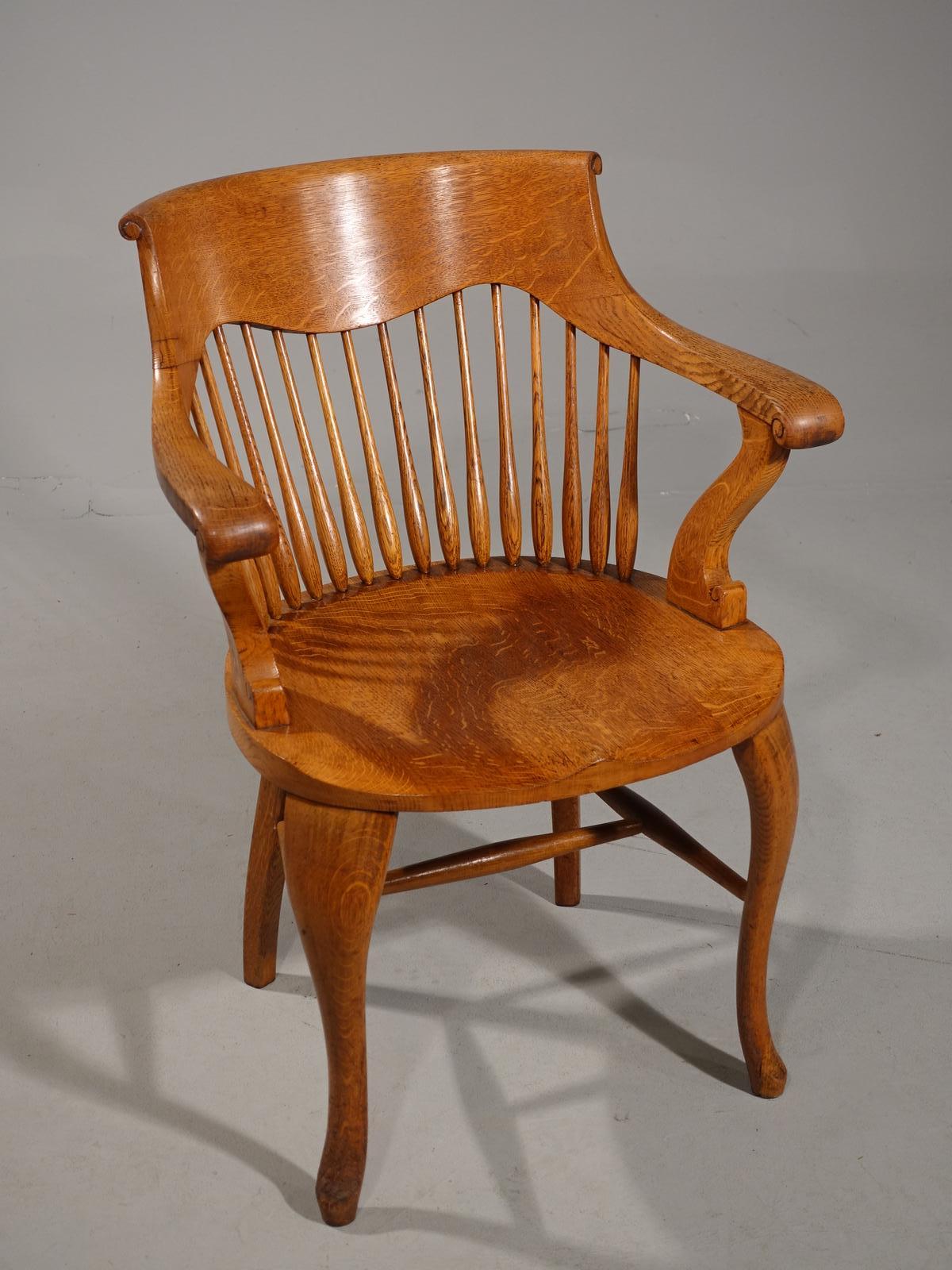 Shapely Early 20th Century Golden Oak Bow-Backed Desk Chair