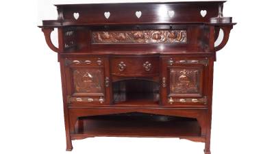 Shapland & Petter Art Nouveau Walnut & Copper Sideboard Server
