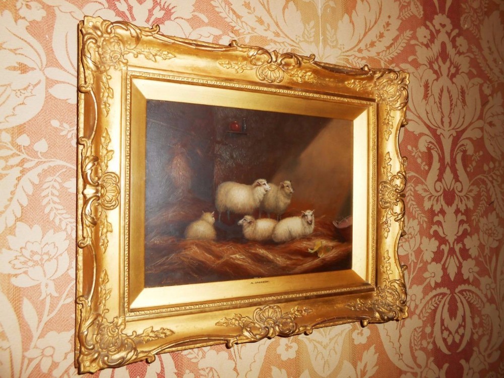 Sheep at rest in a Stable, Albert Jackson of Leeds, 19th Century Oil on Board (1 of 1)