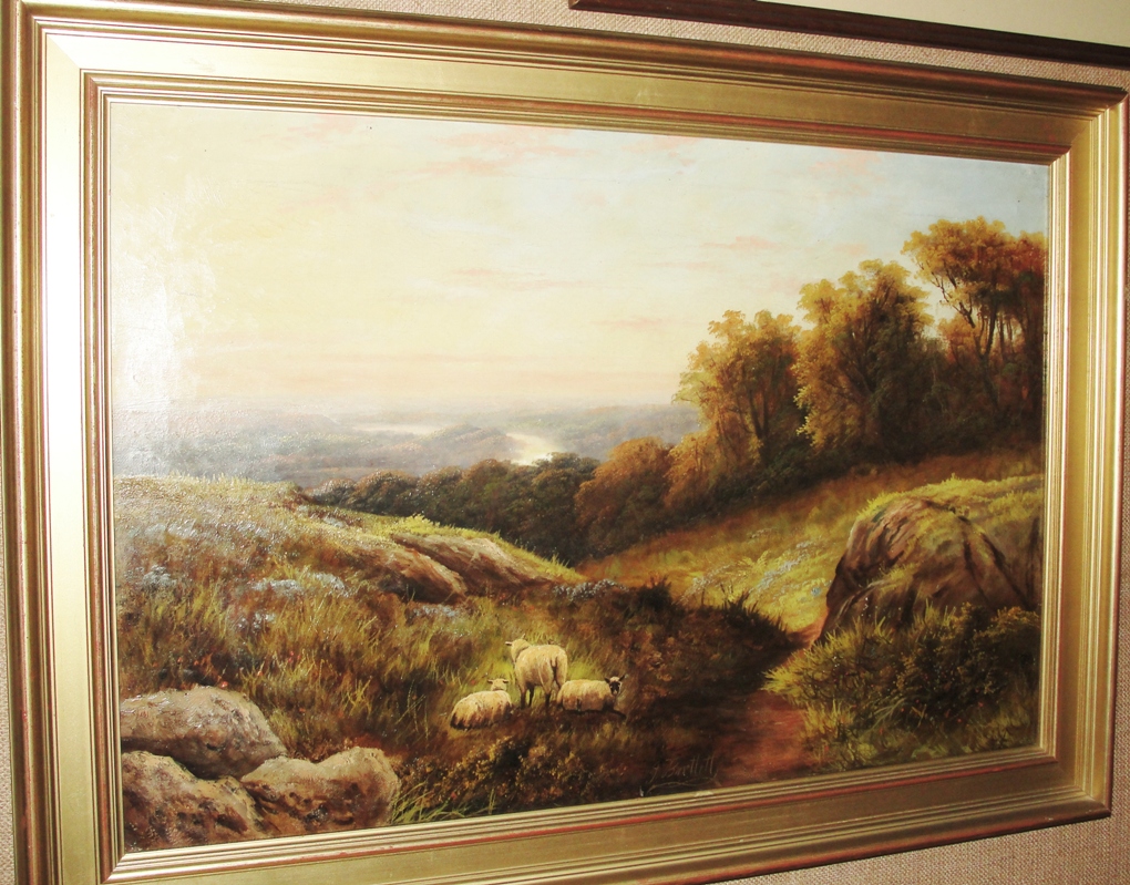 Sheep Grazing in Highlands Oil on Canvas by J.H.Bartlett