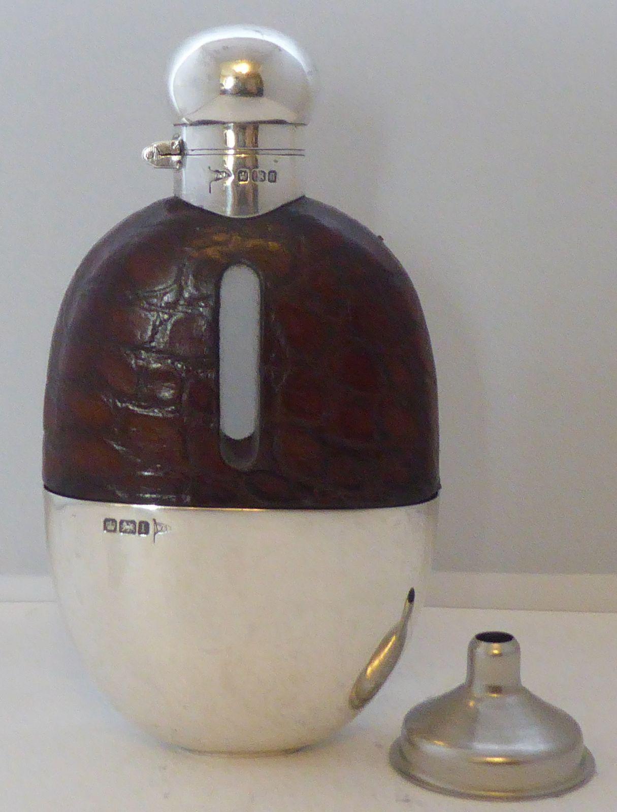 Sheffield 1899 Solid Hallmarked Silver & Crocodile Skin Hip Flask Walker & Hall