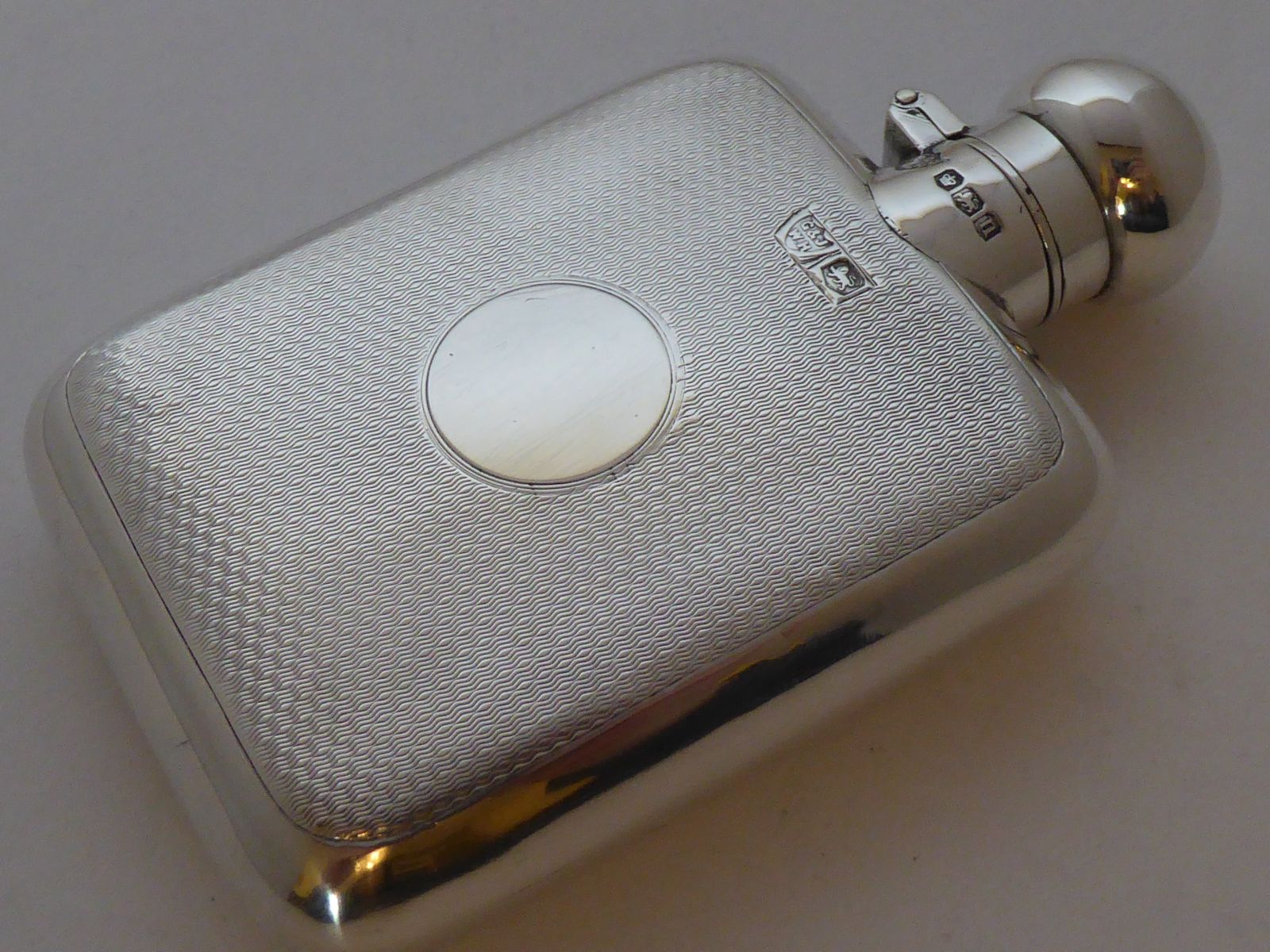 Sheffield 1930 Art Deco Solid Hallmarked Silver Hip Flask G & JW Hawksley