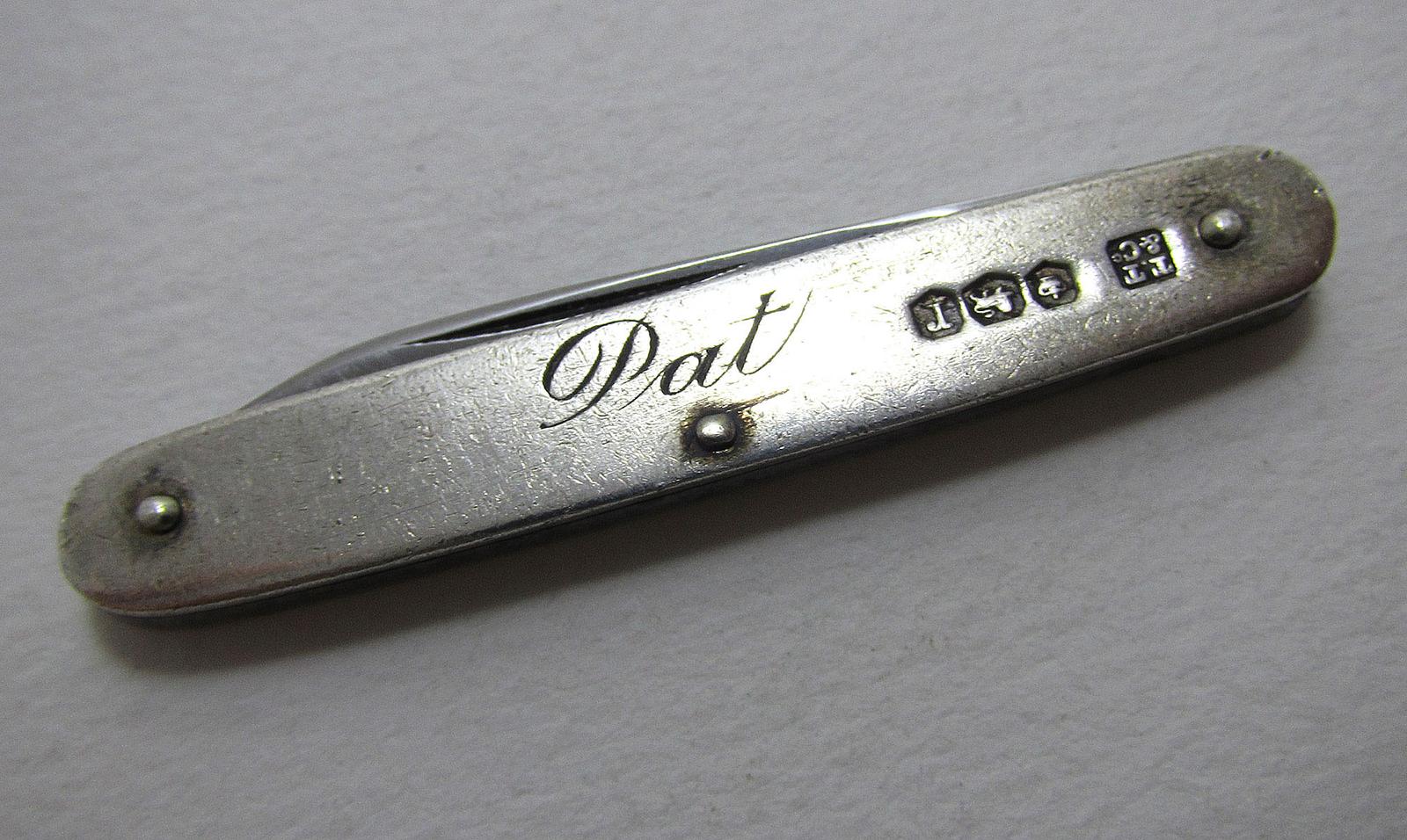 Sheffield Vintage Sterling Silver Small Folding Fruit Knife Penknife, Engraved 'Pat'