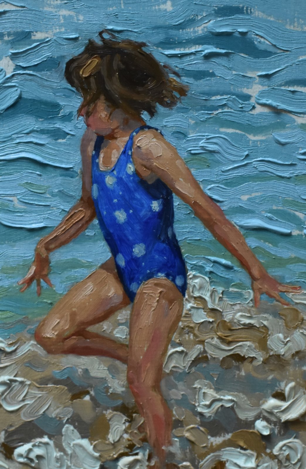 Sheila Tiffin Original Oil Painting - Girl Playing At the Beach 'Cornish Art'