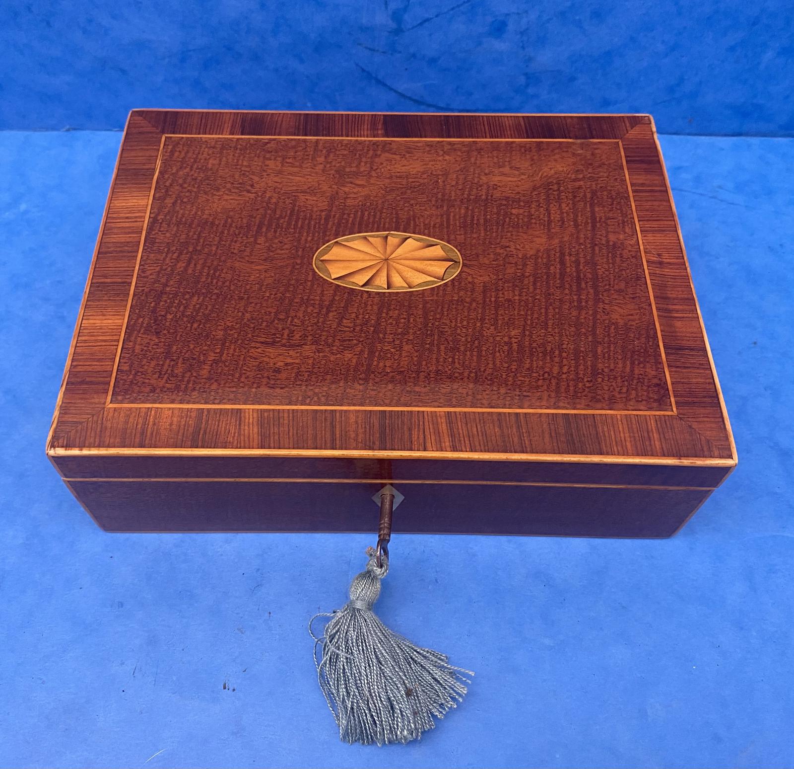 Sheraton Fan Inlaid Mahogany Table Box