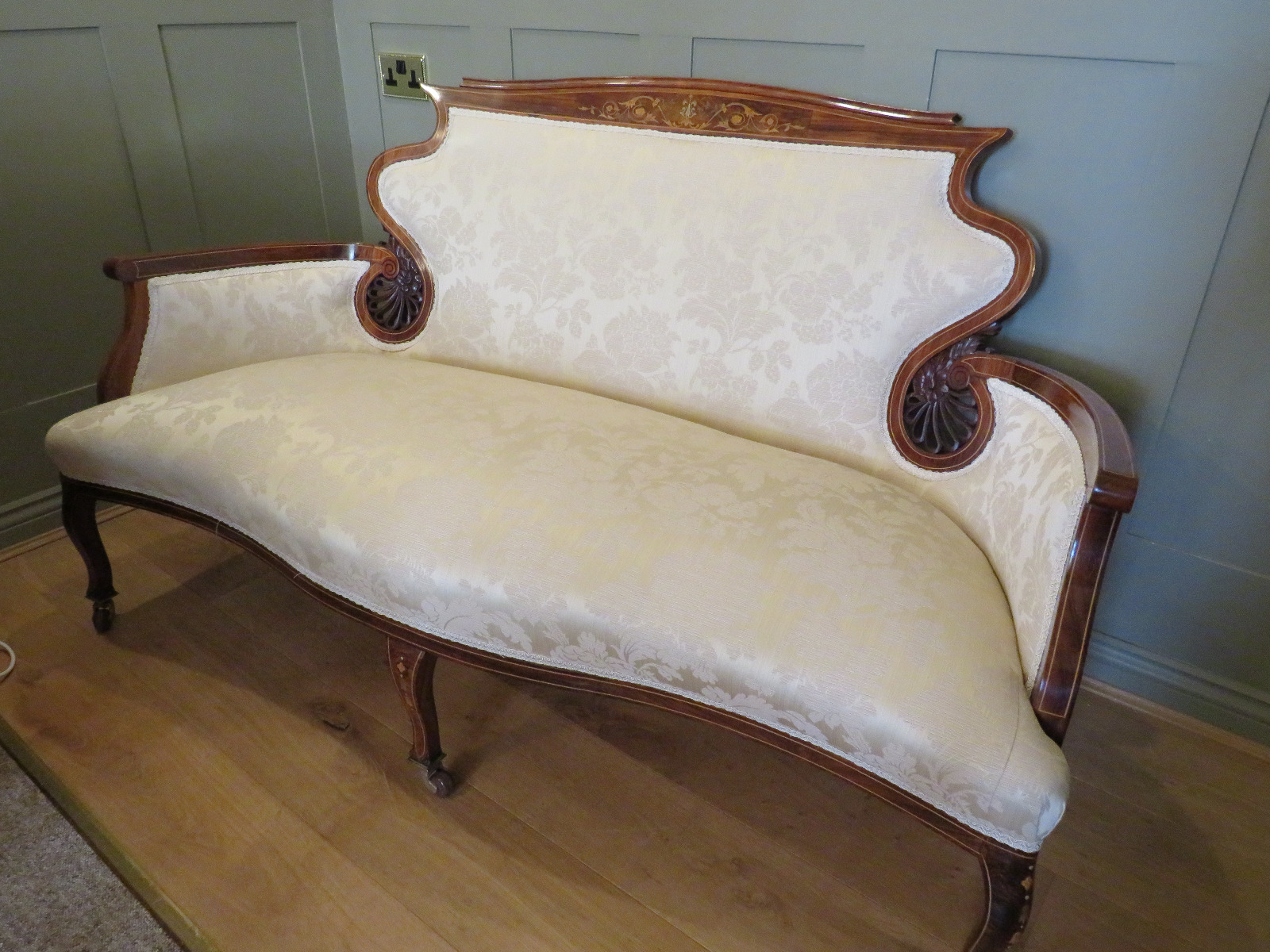 Sheraton Revival Inlaid Sofa Restored & New Upholstery C.1900