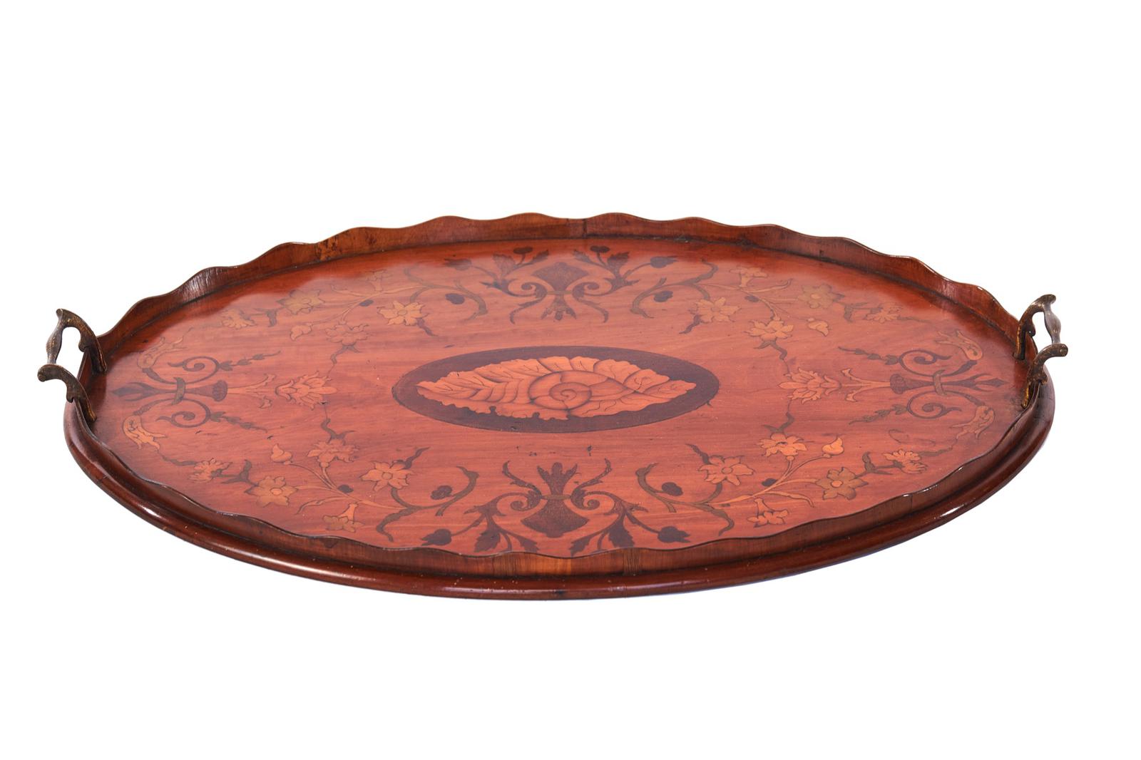 Sheraton Revival Oval Satinwood Inlaid Serving Tray c.1880 (1 of 6)