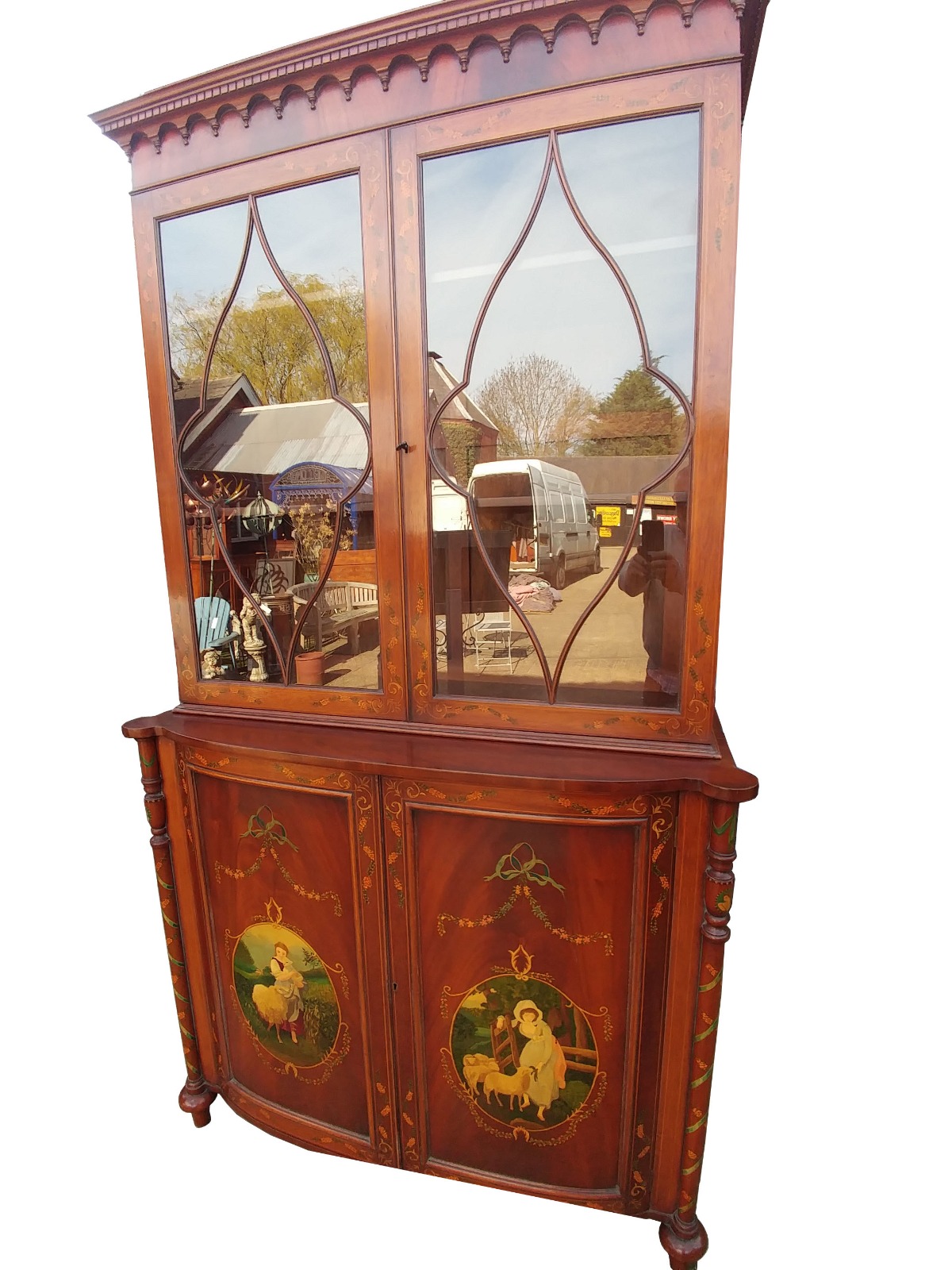 Sheraton Revival Painted Mahogany Bookcase Cabinet