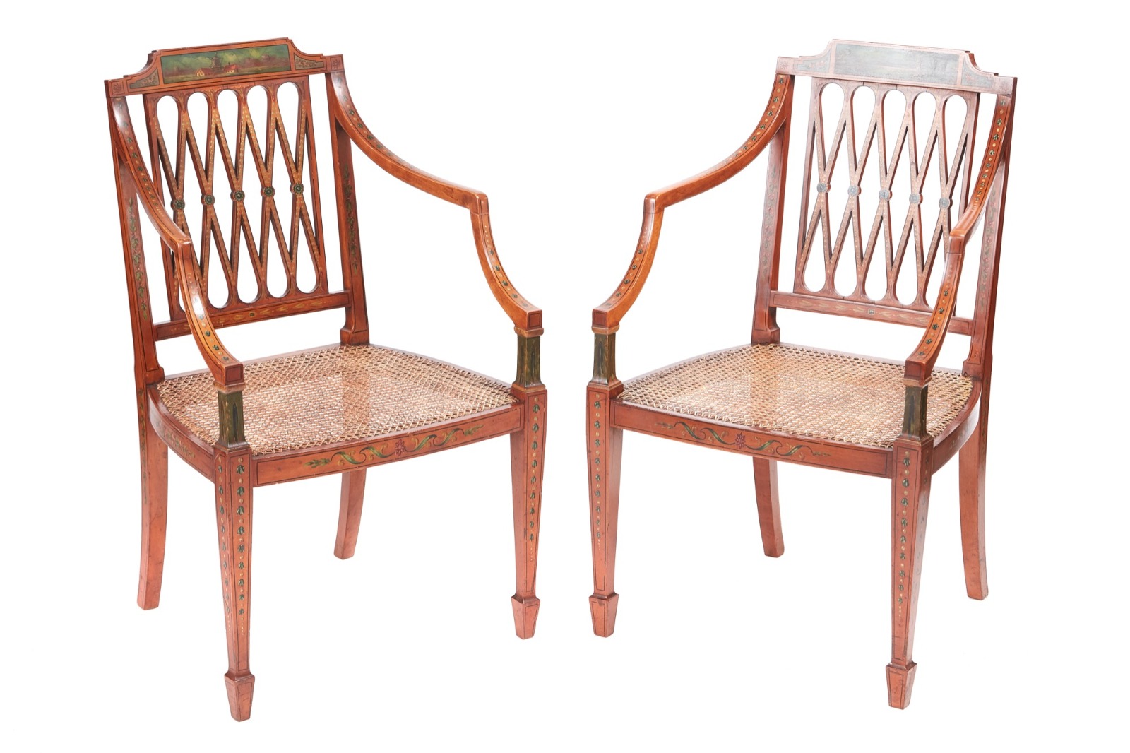 Sheraton Revival Satinwood & Painted Elbow Chairs (1 of 1)