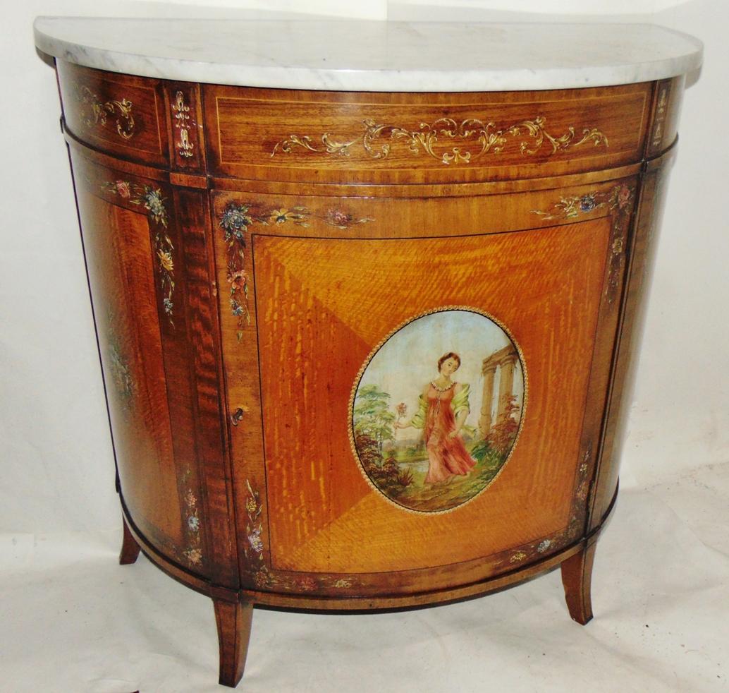 Sheraton Style Satinwood & Decorated Side Cabinet