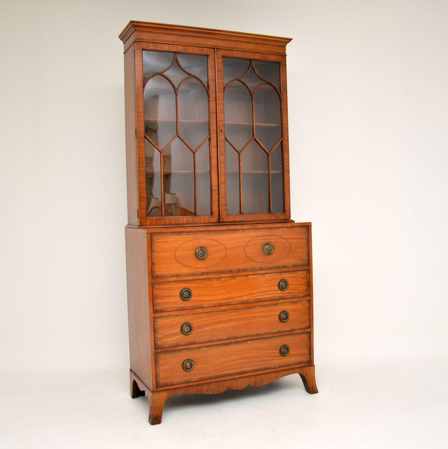 Sheraton Style Satinwood Secretaire Bookcase c.1930