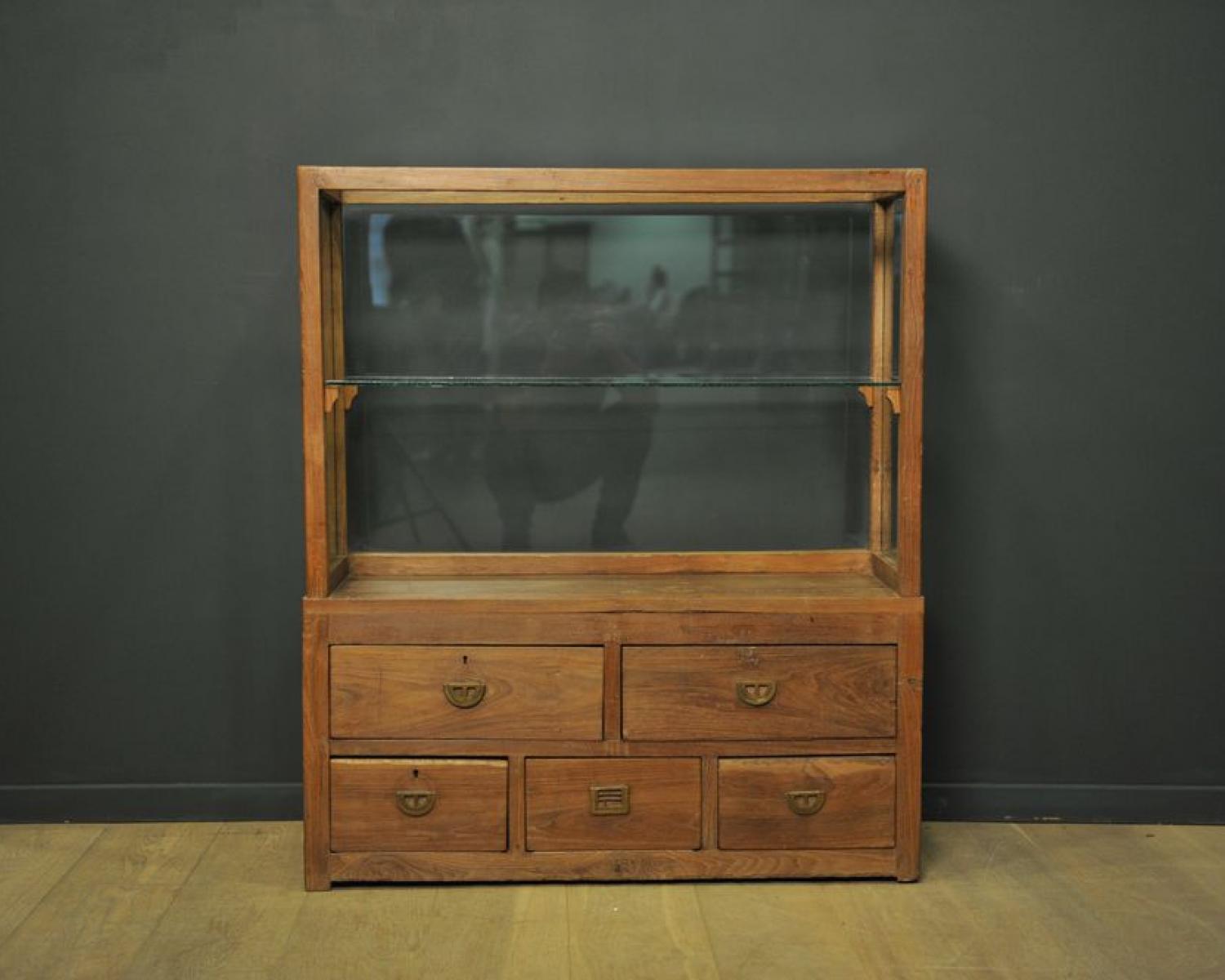 Showcase furniture with two parts, lower with drawers, higher with glasses