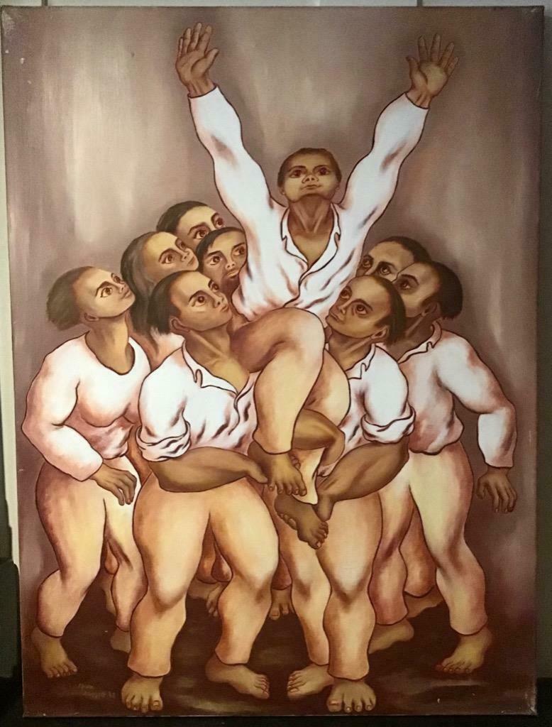 Signed 1960s Surrealist Oil Painting by Welsh Artist Moira Doggett