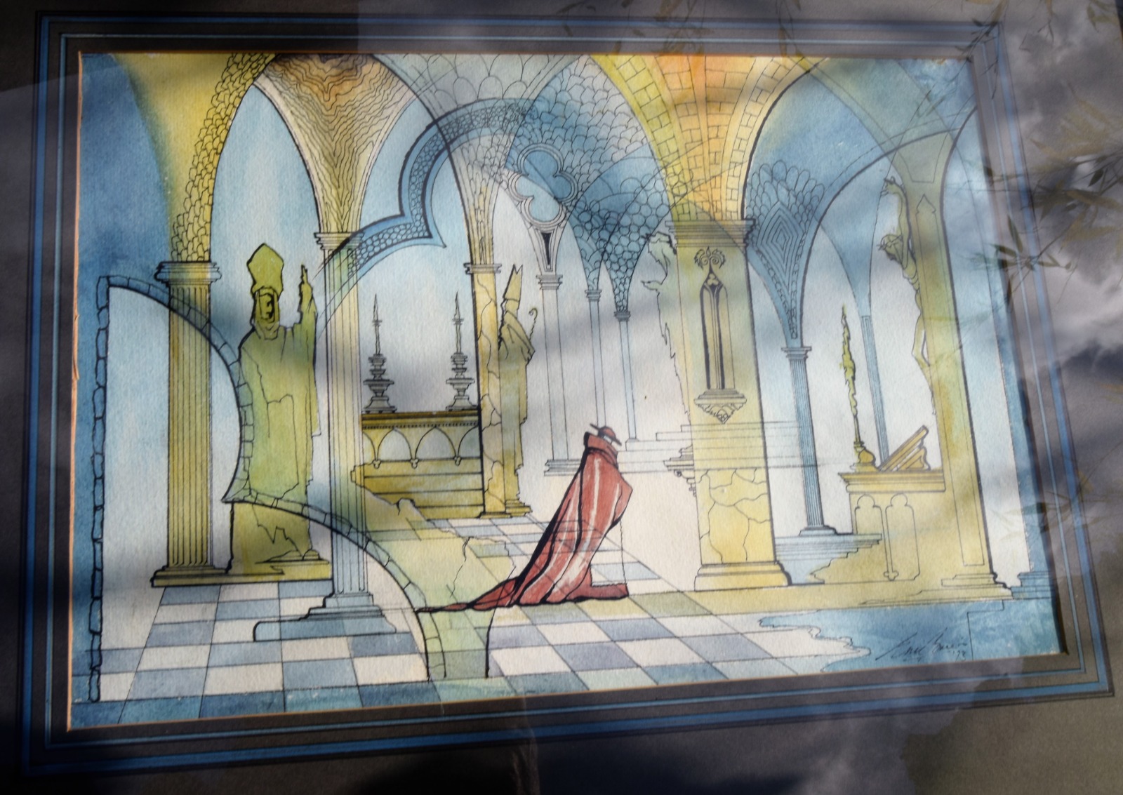 Signed 1973 Eric Briers Ink & Watercolour Cardinal Painting Opera Figures