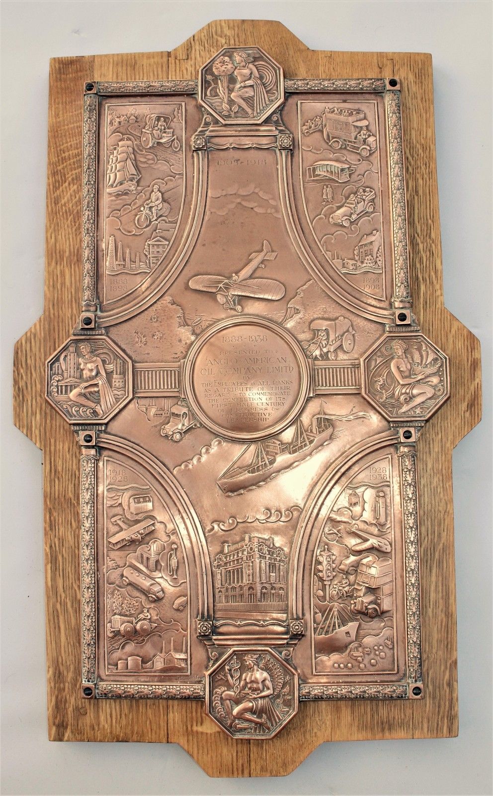 Signed a E Jones Copper Plaque Anglo American Oil Company