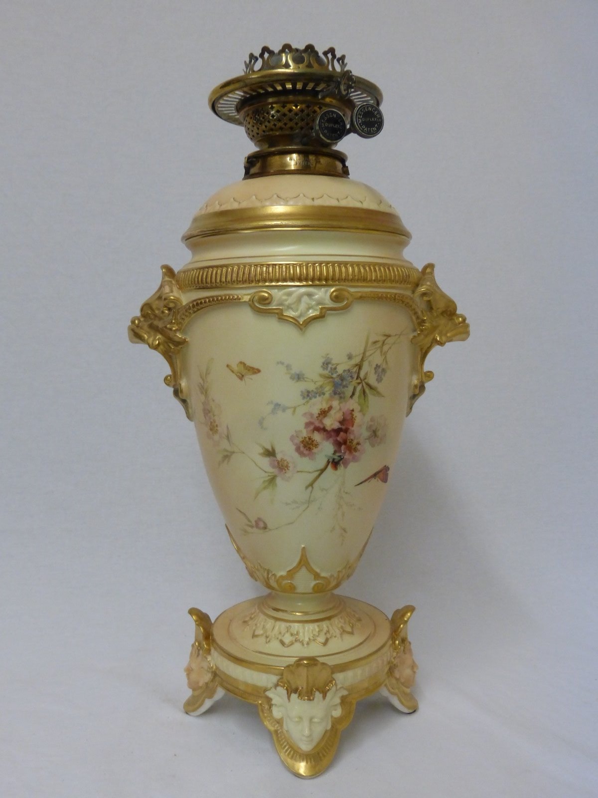 Signed Edward Raby Royal Worcester Oil Lamp 1892