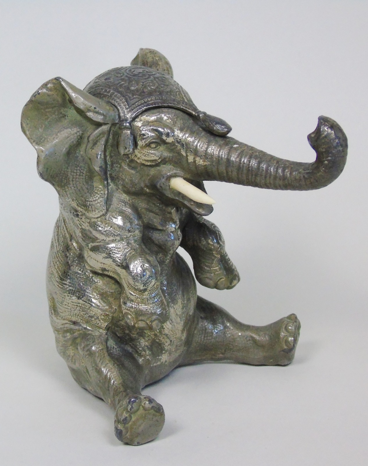Signed Japanese Meiji Period Silver Elephant Inkwell