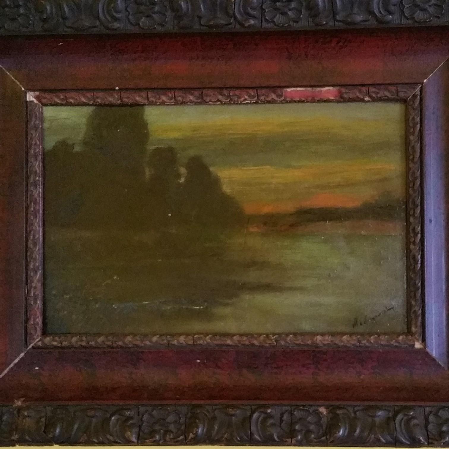 Signed Mednyanszky Oil Painting on Canvas – Atmospheric Landscape at Sunset – Hungarian Impressionist